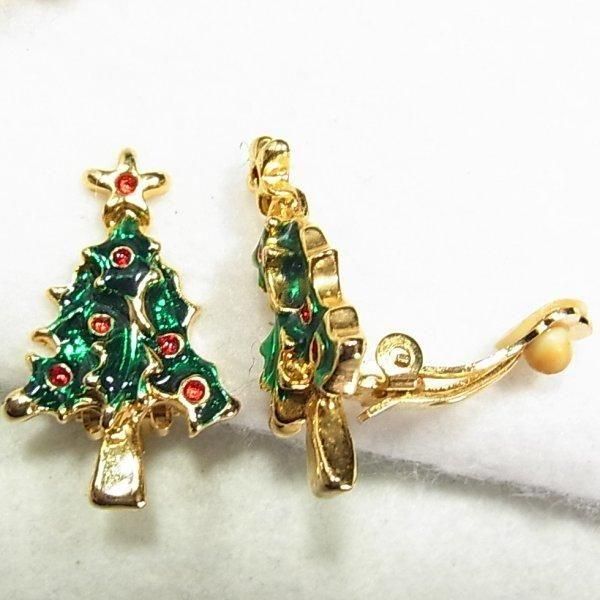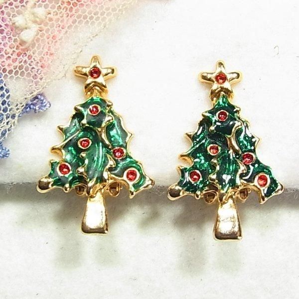 ●クリスマスツリーのイヤリング ゴールドトーンメタルにエナメル きれいなオールドストック新品