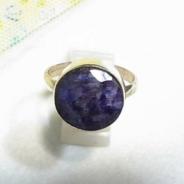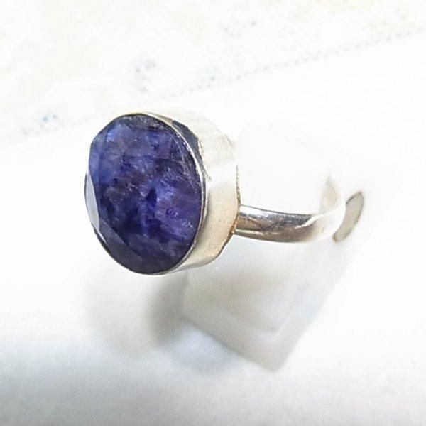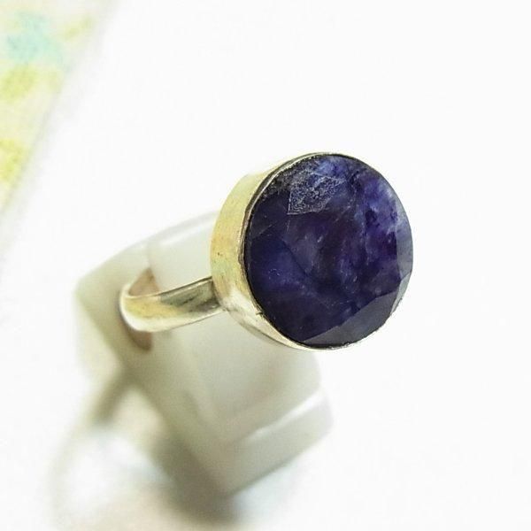 ● 天然石、サファイアの指輪 表面ファセットカットのサファイア