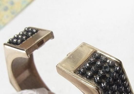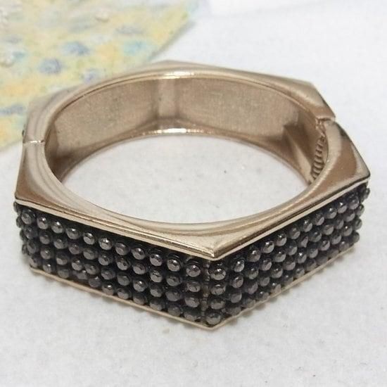 ●黒ガラスビーズをまぶしたクランパーブレスレット ゴールドトーンのメタル製