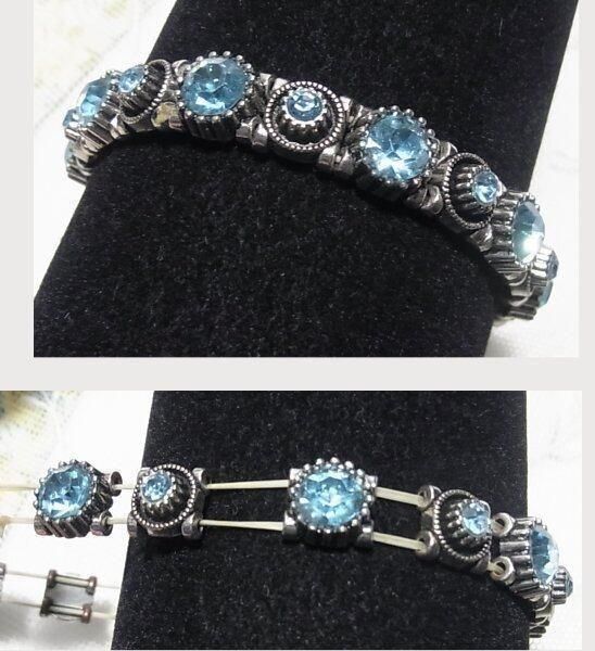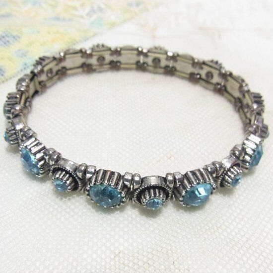 水色のラインストーンのストレッチブレスレット 2000s E4675BR
