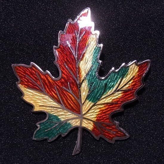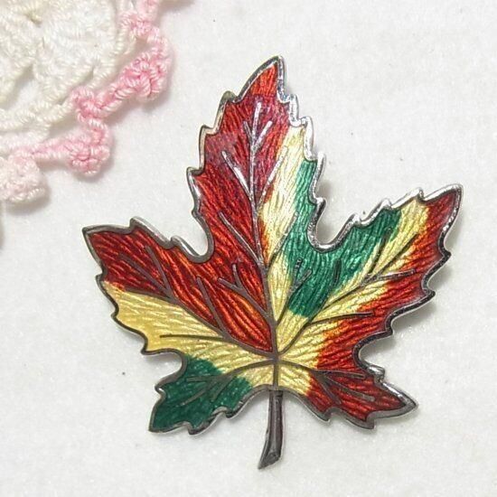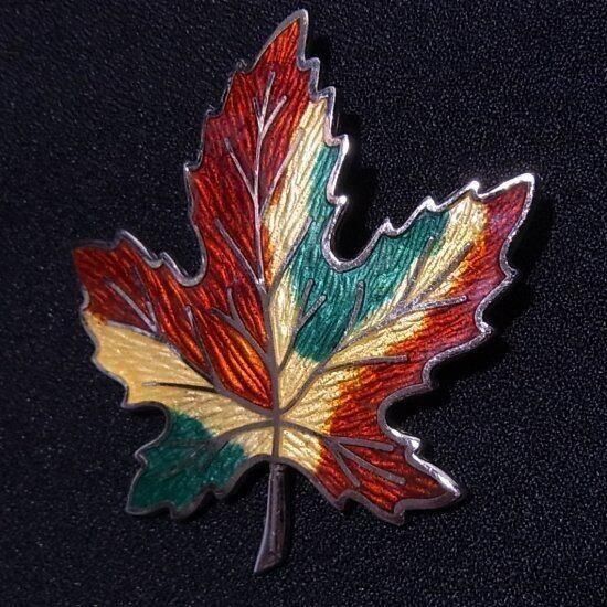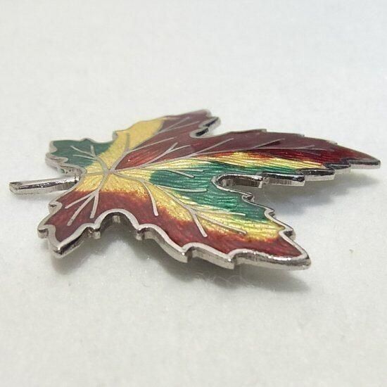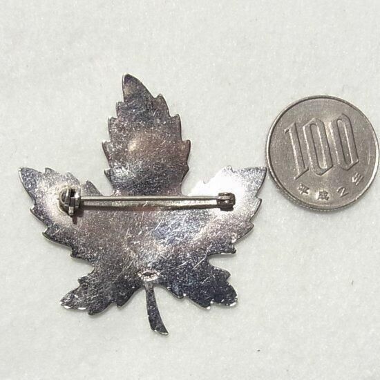 ●メープルリーフのエナメルブローチ シルバー製 重さ14グラム