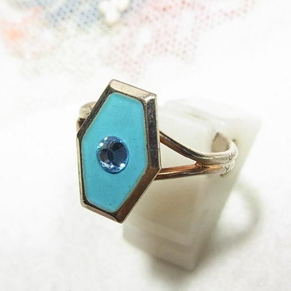 ヴィンテージ 水色の六角形のリング フリーサイズ 1990s E4700R