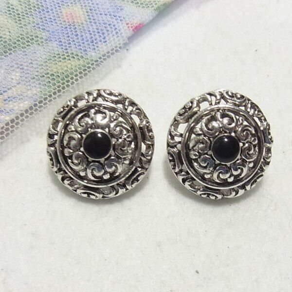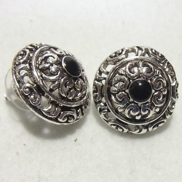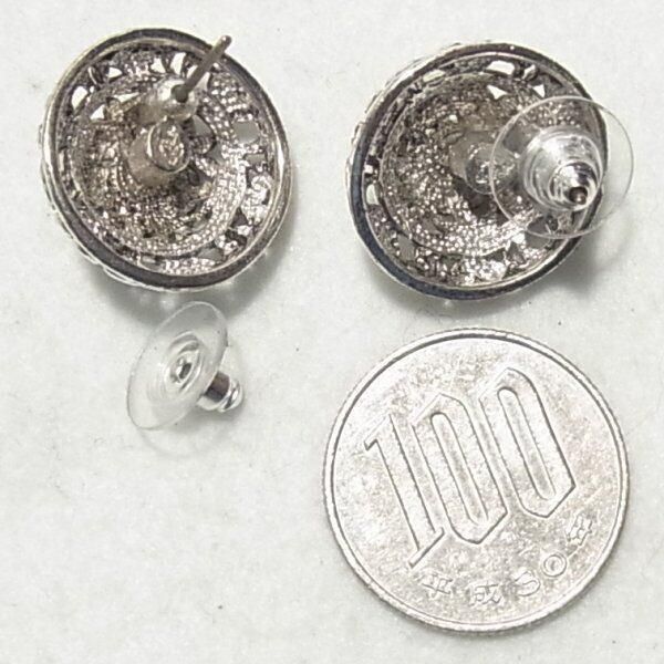 彫り模様のあるドーム形ラウンドピアス オールドストック品 E4709P
