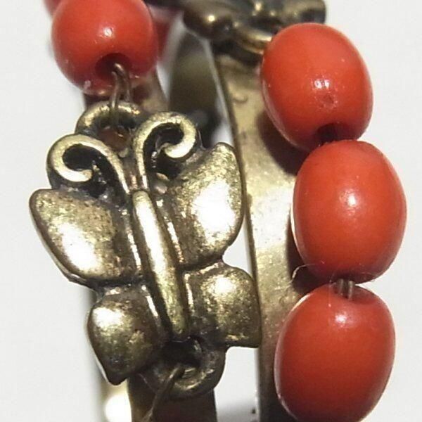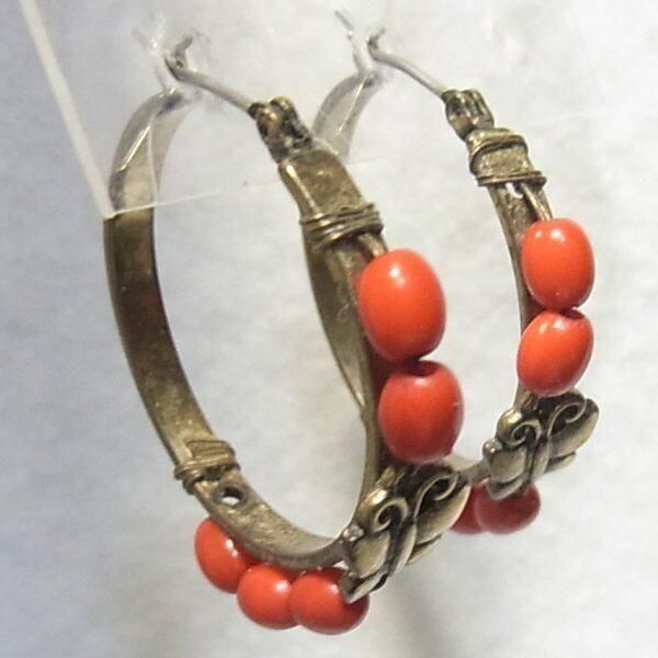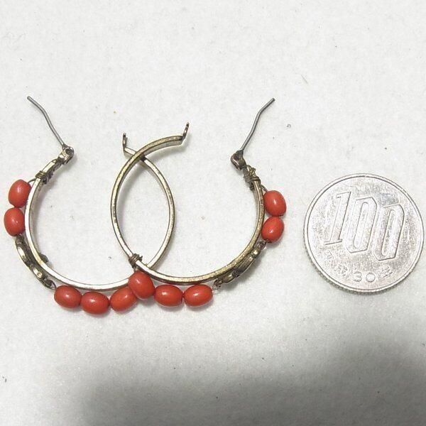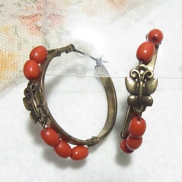 ●赤いガラスビーズのフープピアス ゴールドトーンのメタル製