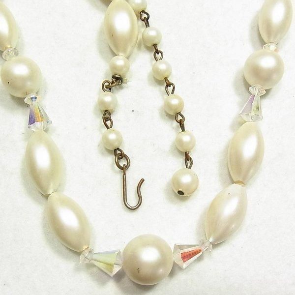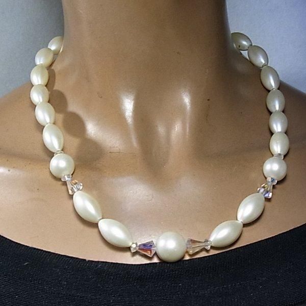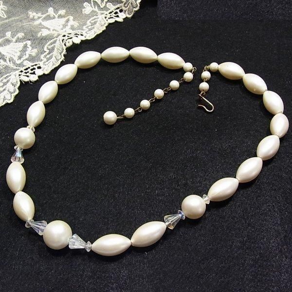 ヴィンテージ パール風オーバルビーズのネックレス 1960s E4713N
