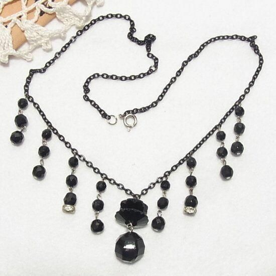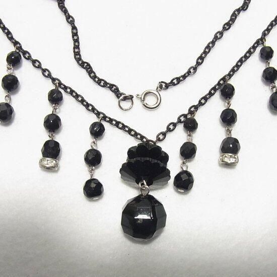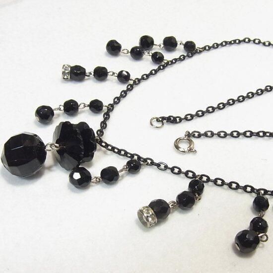 黒ガラスのビーズ製ビブネックレス オールドストック品 E4715N