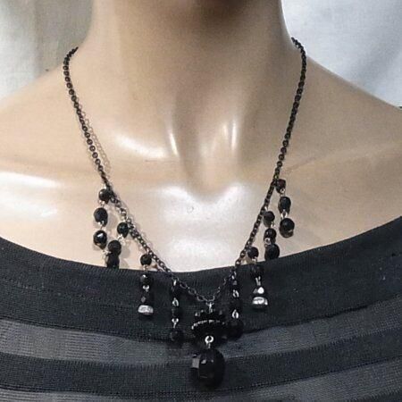 ●黒ガラスのビーズ製ビブネックレス 黒チェーン