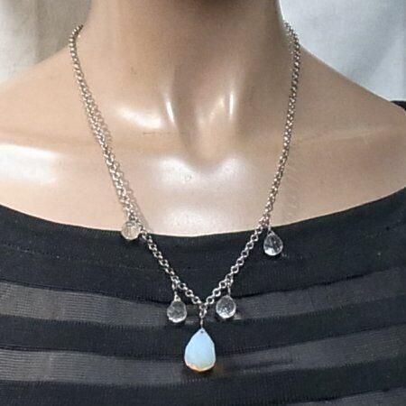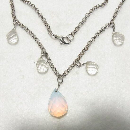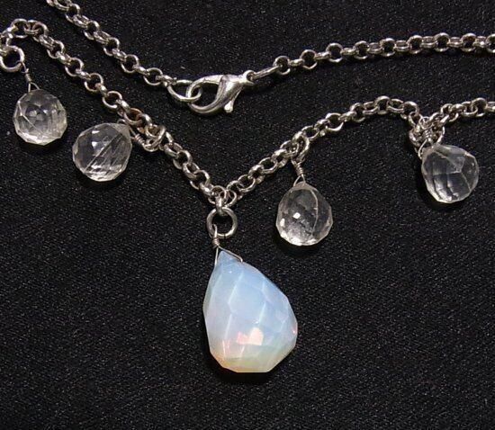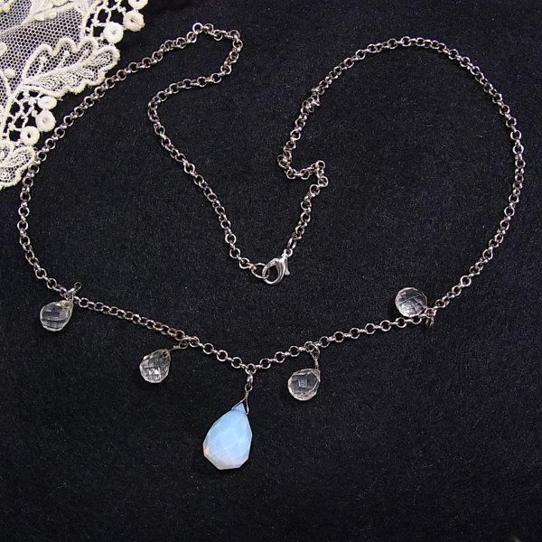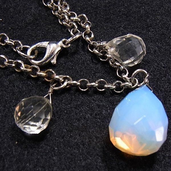 乳白色のチャームとクリアなチャーム シルバートーンのメタルチェーン