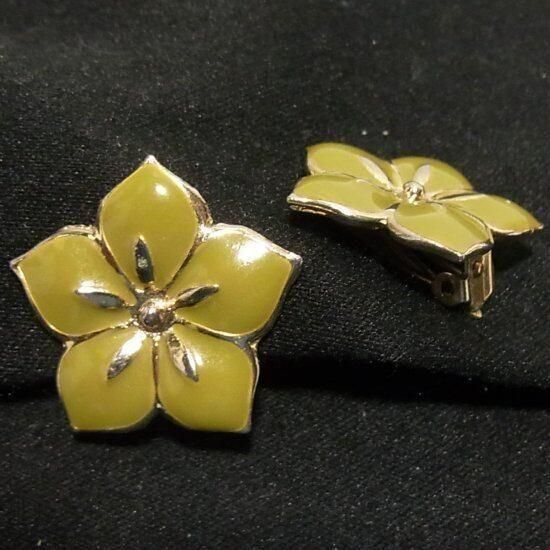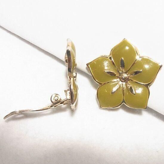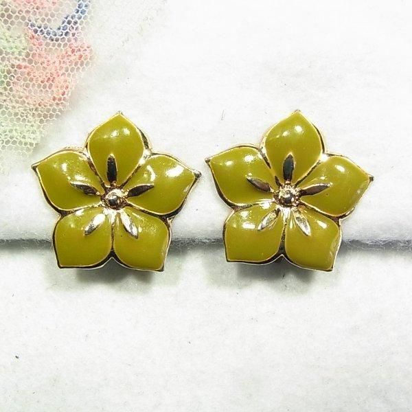 ●フラワーイヤリング ゴールドトーンメタルに鶯色のエナメル きれいです