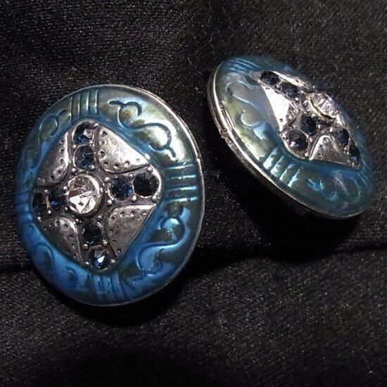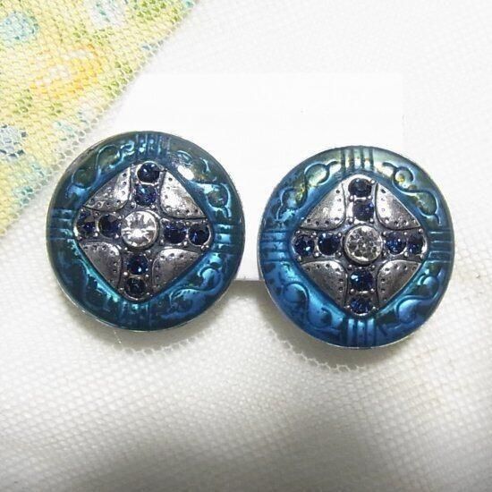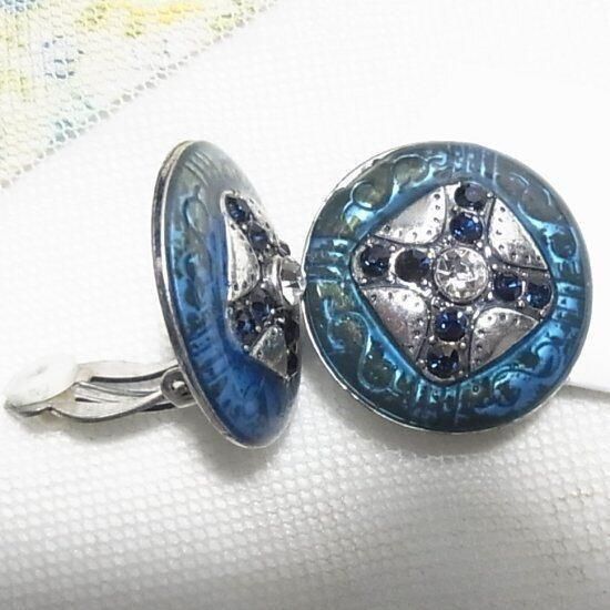 ヴィンテージ 濃紺色のラインストーンイヤリング 1990s E4749E