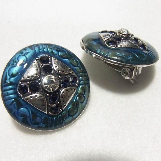 ●ブルーのラウンドイヤリング ブルーとクリアなラインストーン