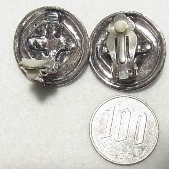 アイボリーカラーのエナメルのドーム形イヤリング 2000s E4727E