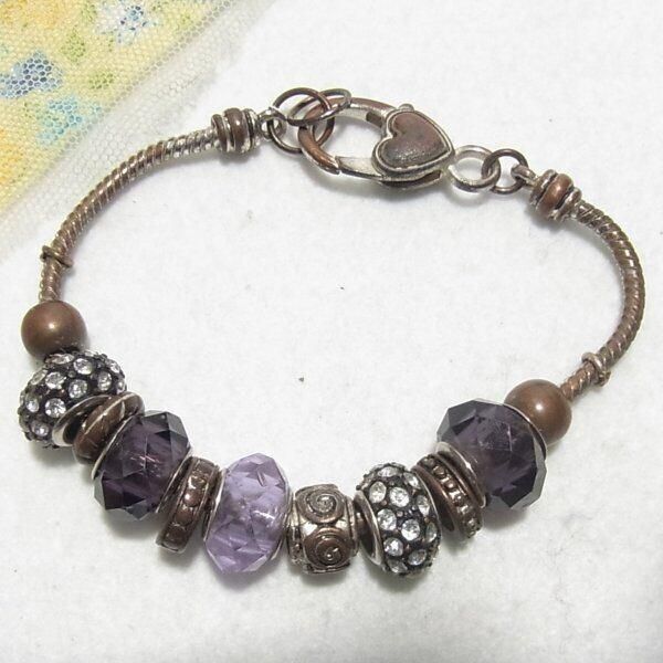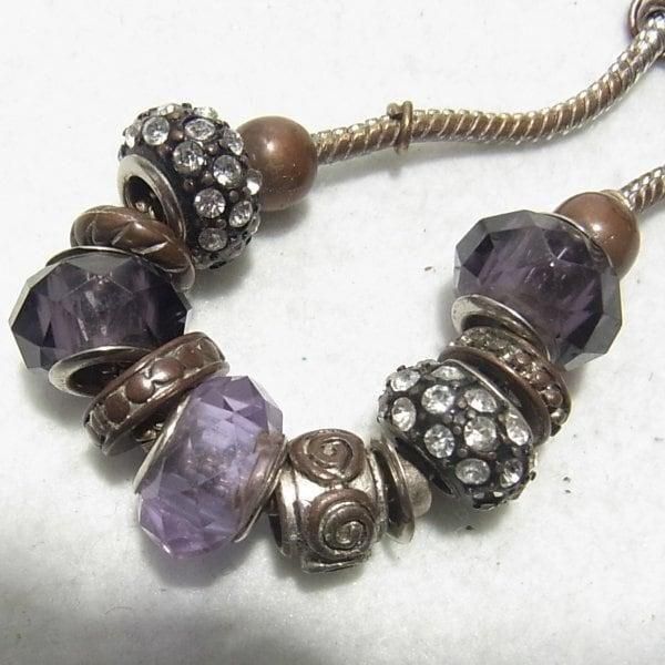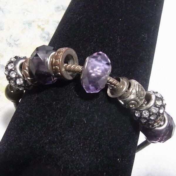 ●紫のガラスビーズブレスレット クリアなラインストーン スネークチェーン