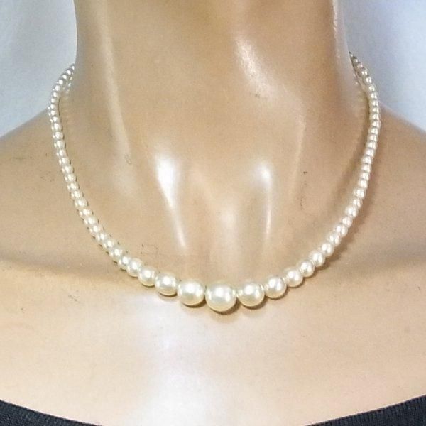 ●模造パールのネックレス ガラスのビーズ シルバートーンのメタル金具