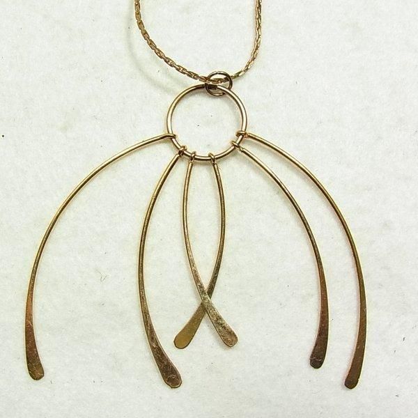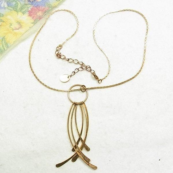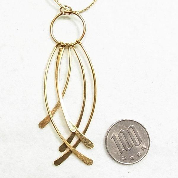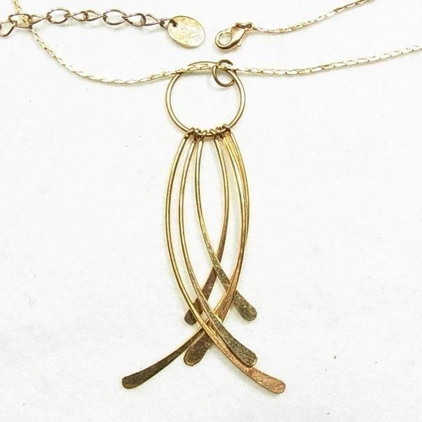 ● 曲線のバーが下がるペンダントネックレス ゴールドトーンのメタル製