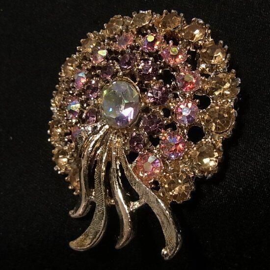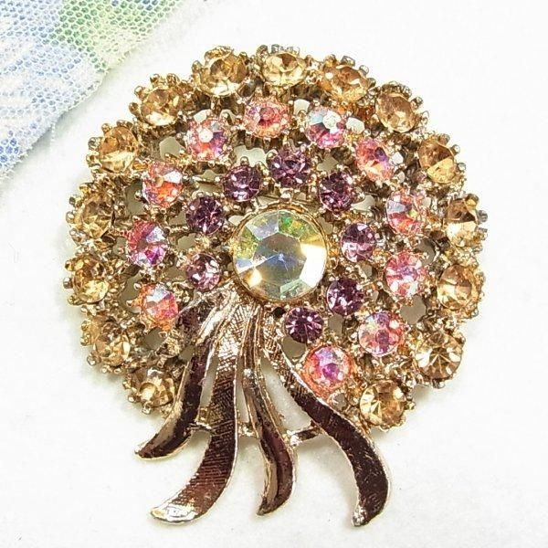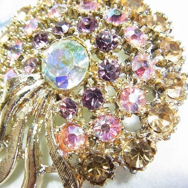 ヴィンテージ オーロララインストーンのエレガントブローチ 1960−70s E4782B