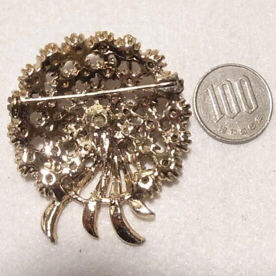 ヴィンテージ ラインストーンのフラワーブローチ 1970s E4769B