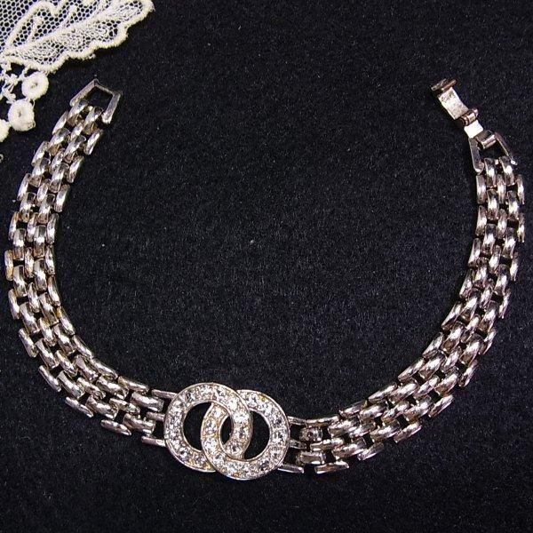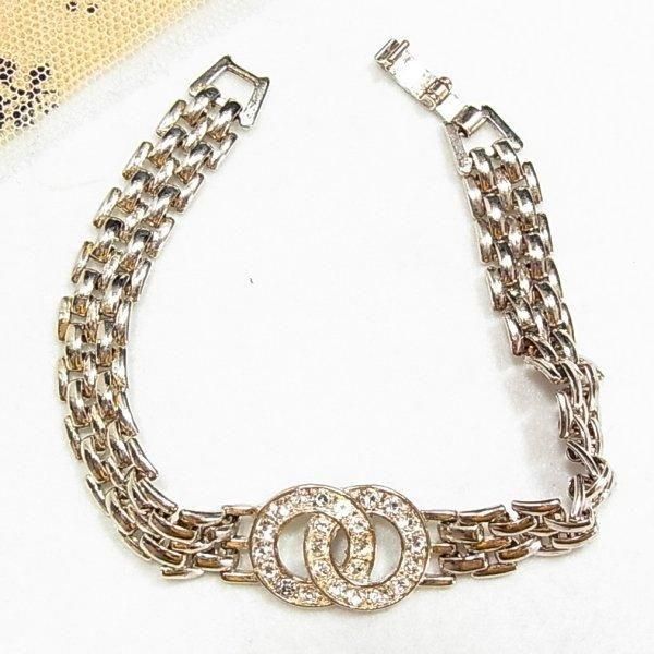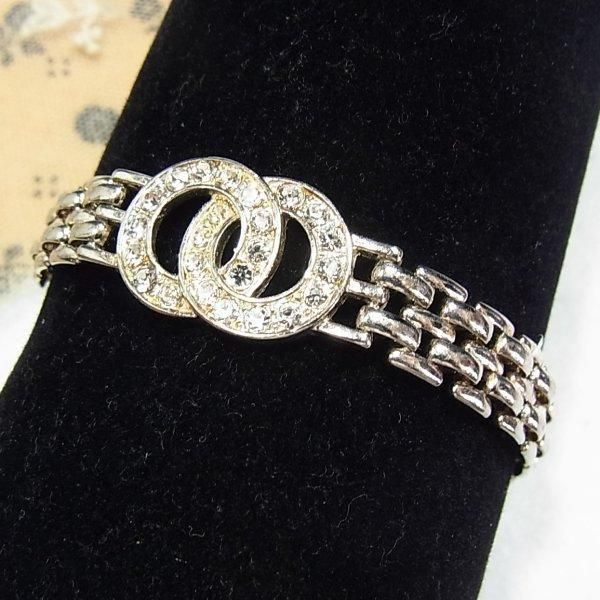 ヴィンテージ クリアなラインストーンのメタルブレスレット 1990s E4805BR