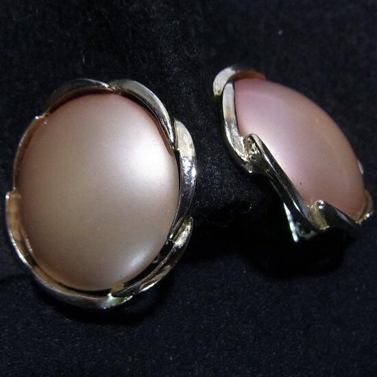 ヴィンテージ ドイツ製 ピンクのカボションイヤリング 1970s E4807E