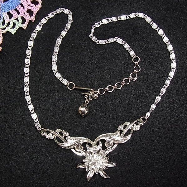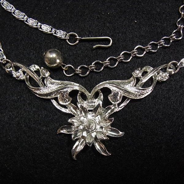 ヴィンテージ フラワーセンターのシルバートーンのメタルネックレス 1970s E4830N